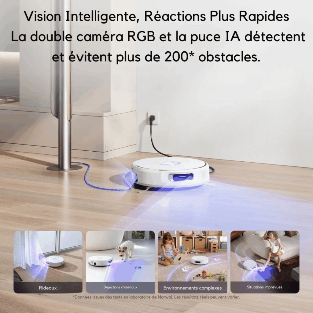 🤖 Nettoyage Intelligent – Détecte obstacles et nettoie efficacement.