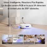 🎭 Fonctions : AI DirtSense™, serpillière FlowWash, nettoyage en profondeur CarpetFocus, contrôle vocal, navigation intelligente