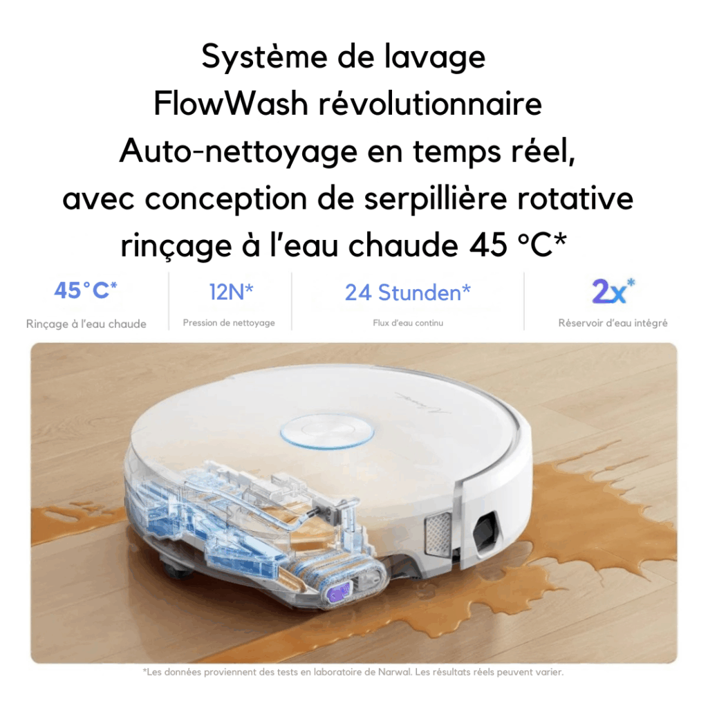 ✔ Serpillière auto-nettoyante – Lavage en temps réel et chauffage jusqu’à 45 °C pour un nettoyage hygiénique.