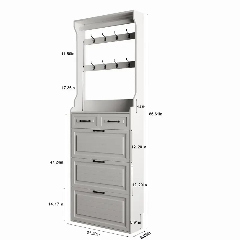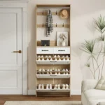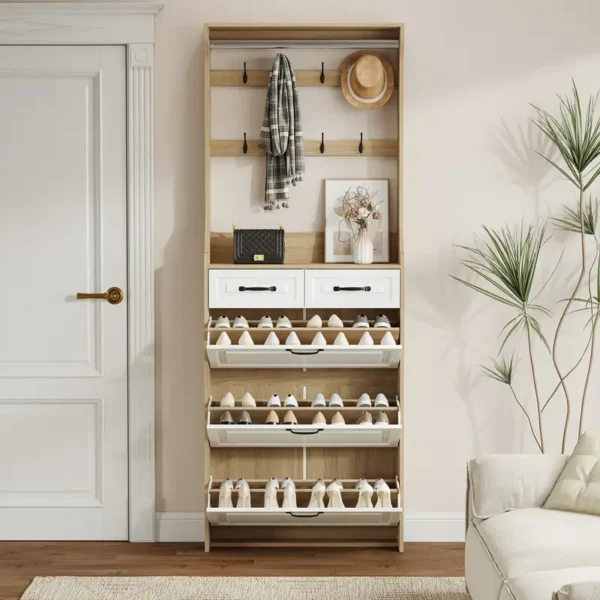 ✔ Rangement multifonction – 3 tiroirs à bascule avec cloisons amovibles pour chaussures, clés, chapeaux et plus encore.