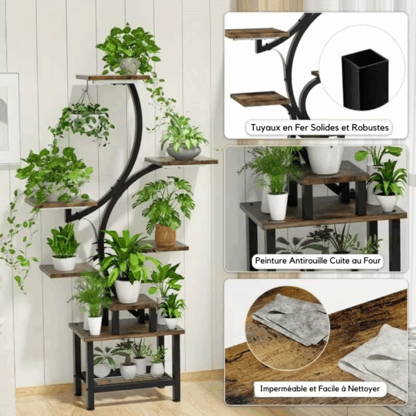 ✔ Design multi-niveaux – 8 étages offrant un espace généreux pour plantes, décorations ou rangement.